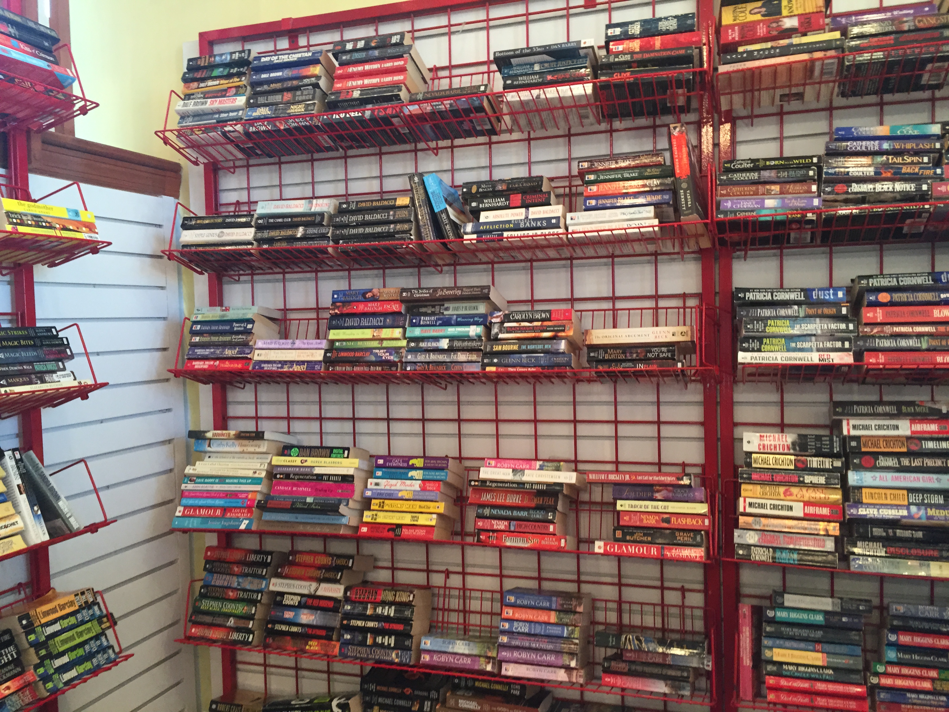 There were SO many books to choose from from mystery to romance to non-fiction and more. And if you went up a small set of stairs, there was even a little seating area to go through the things.