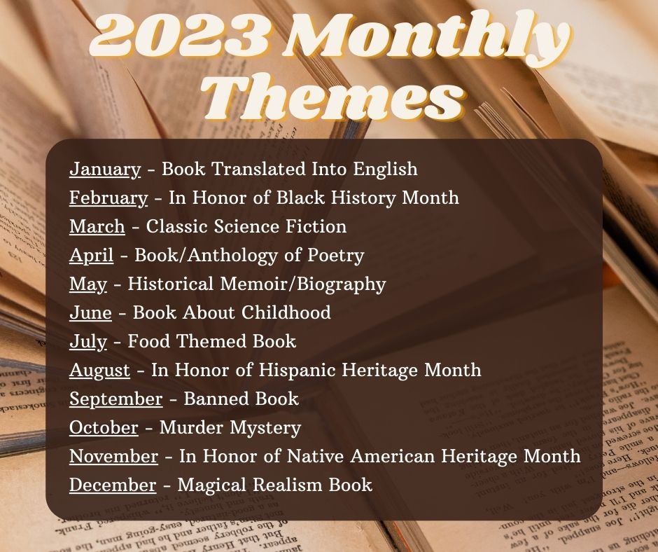 Themes are a great way to make sure that you have an array of books (you can see an example of what I do to the left). This is particularly important if you plan to try and read a lot of books. You can make your book club have a theme if that is your desire – so you are a classical book club, or a sci-fi book club. But, if you just want to read anything out there, start with making themes. Before January (or whenever your “new year” will start) it can be smart to know what your monthly themes will be.